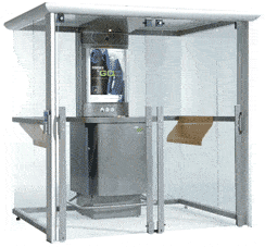 Plotseling was-ie er. Sinds een paar weken staat in het kantoor een rookcabine. Een futuristisch ogend ding: de Smoke an' Go. Je kunt er met vier personen in. Om te roken zonder dat anderen last van de rook hebben. Van alle gemakken voorzien: schuifdeuren, een voetensteuntje, een comfortabele rugleuning, automatische verlichting, een leestafel, het kan allemaal niet op.
